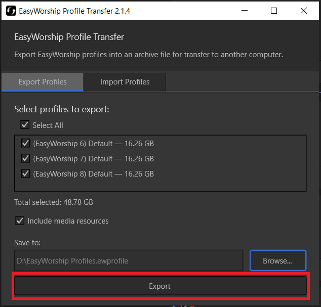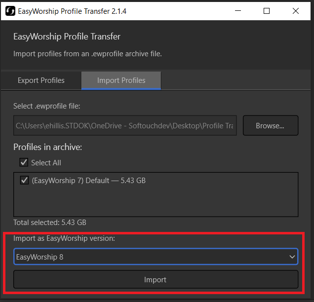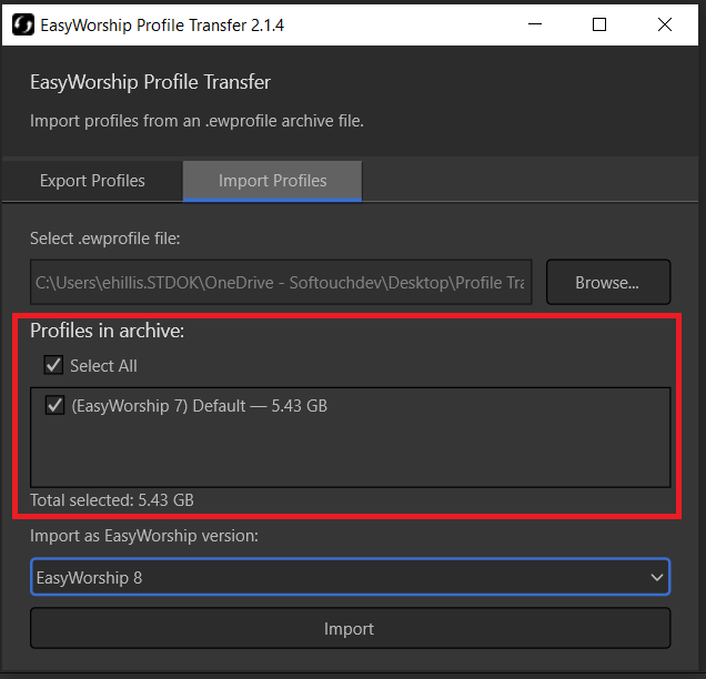 Transfer EasyWorship Profile