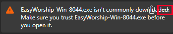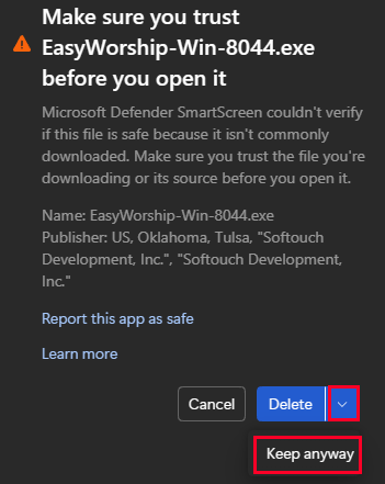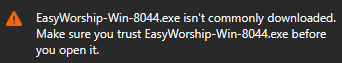 Download EasyWorship 8(build 8.0.44)Download EasyWorship 8(build 8.0.44)Steps for downloading EasyWorship 8Click on the Download button for your desired platform (Windows or Mac).Once the file is done downloading, you may get this message:Put your mouse cursor on this message, and click the 3 dots (...) on the top-right.Click on Keep.Click the down arrow at the bottom-right and click on Keep Anyway.Click on Open File, and you can proceed with installing EasyWorship 8.